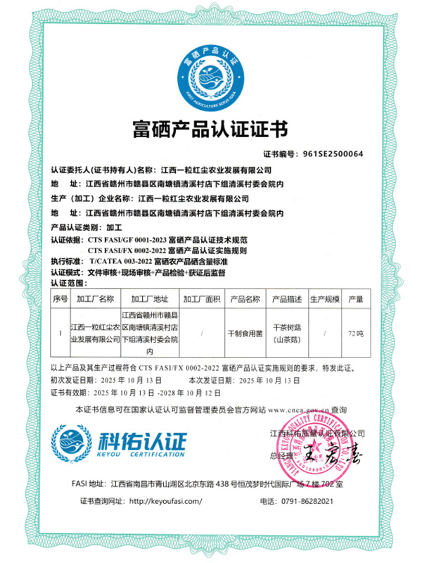江西一粒紅塵農業發展有限公司是一家總部位于江西省贛縣的現代農業多元型企業,專注于食用菌的研發、種植、深加工、貿易研教培、農文旅等全產業鏈發展。公司秉承“健康綠色共享共贏”的核心價值觀,致力于引領鄉村振興之路,旨在成為......